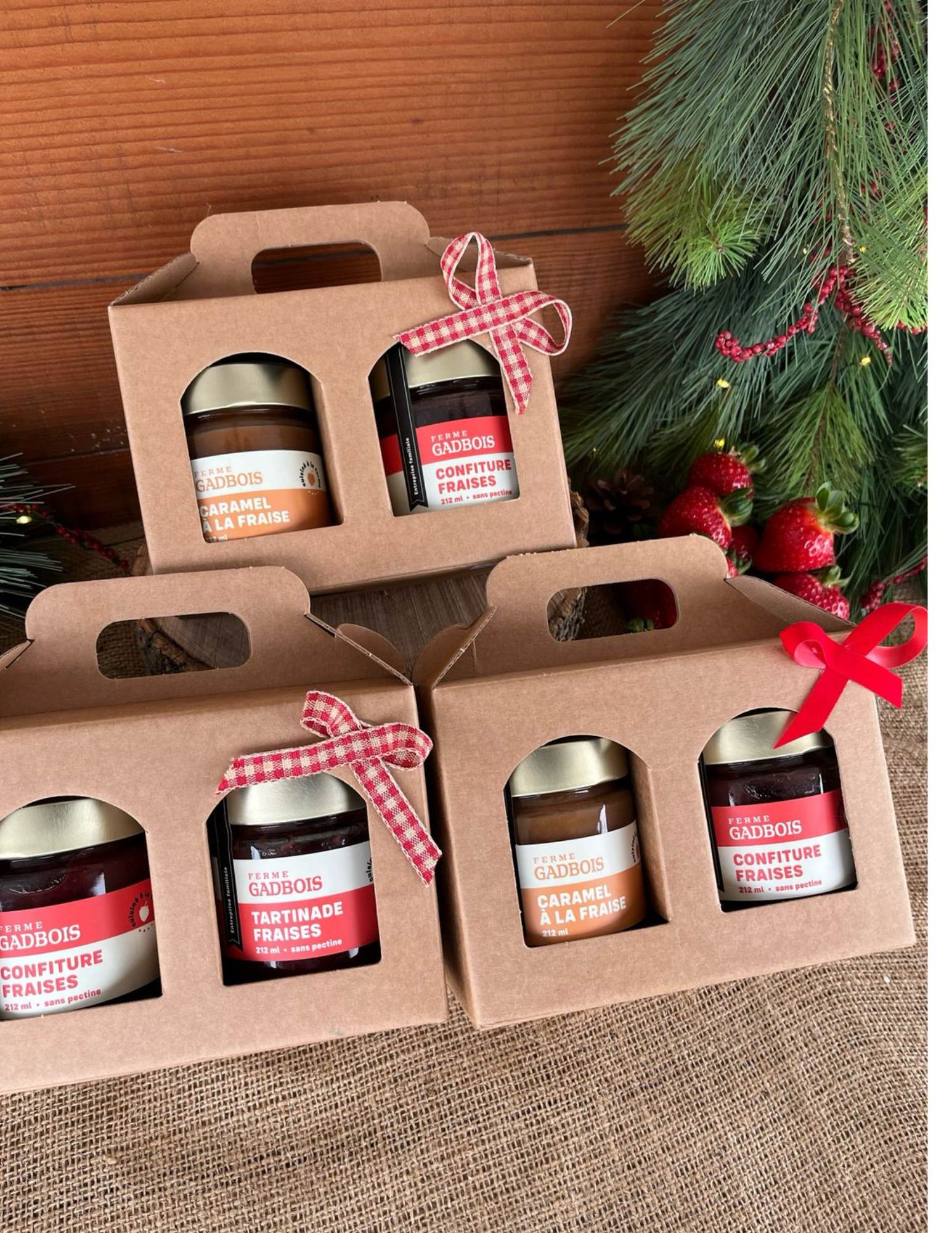 Découvrez des emballages cadeaux gourmands et délicieux, sans oublier nos fraises fraîches!